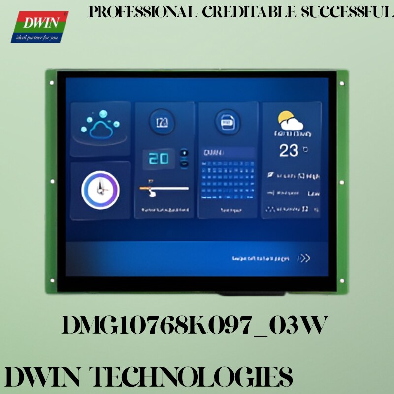 Features: ● 9.7-inch, 1024*768 Pixels resolution, 16.7M Colors, TN-TFT-LCD, normal viewing angle; ● T5L2 chip, runningDGUS II System; ● No touch/ Resistive touch panel/Capacitive touch panel can be selected; ● RS232 and RS485 communication are supported; ● Wi-Fi module and USB module as reserved module interface;
